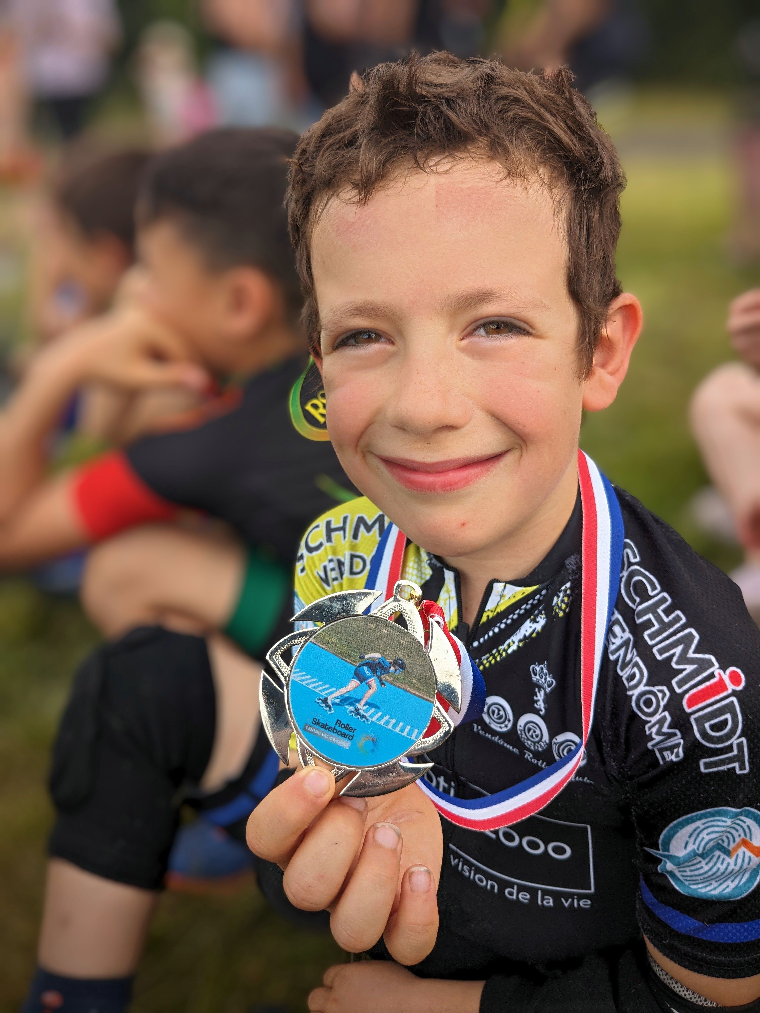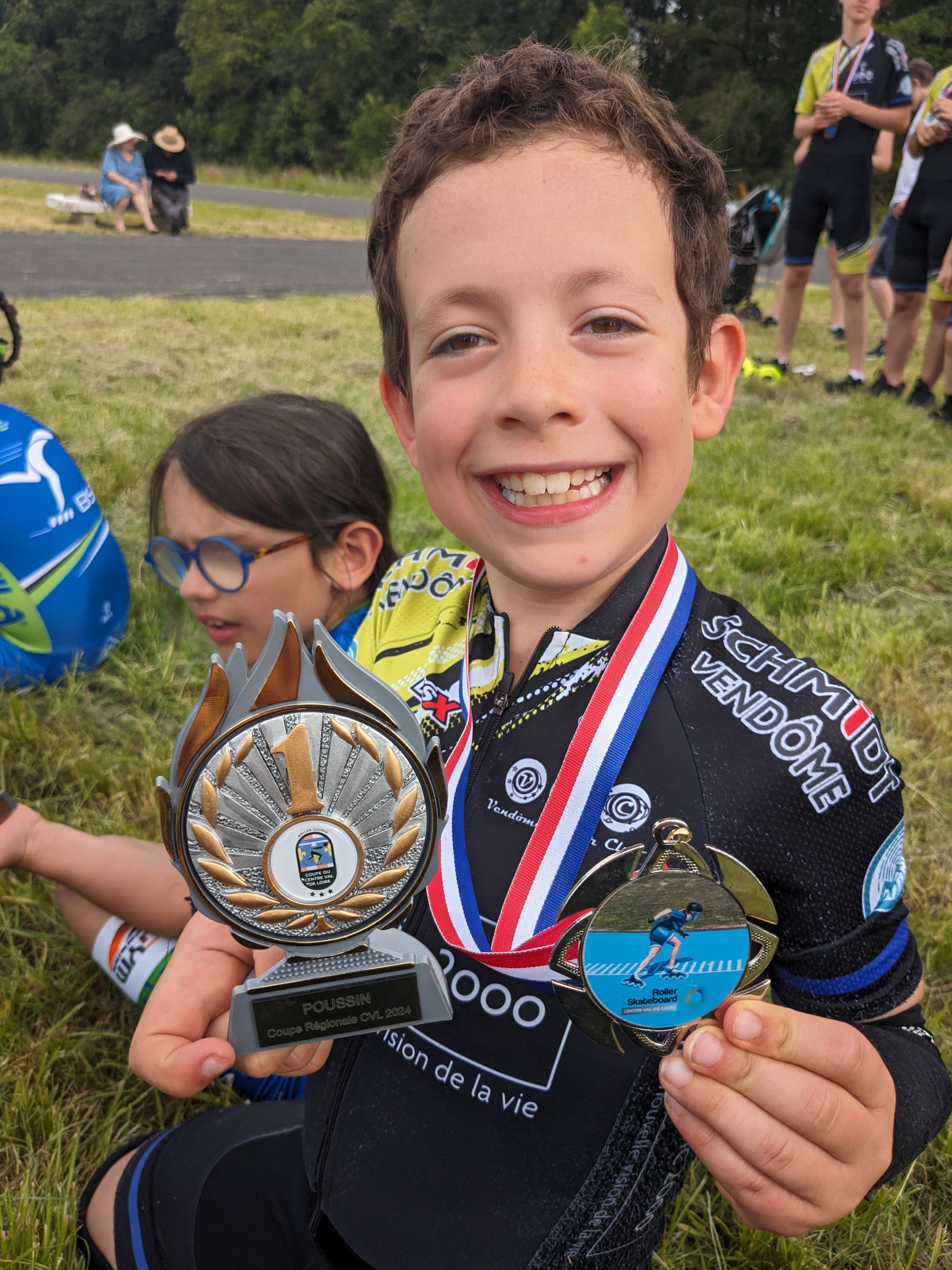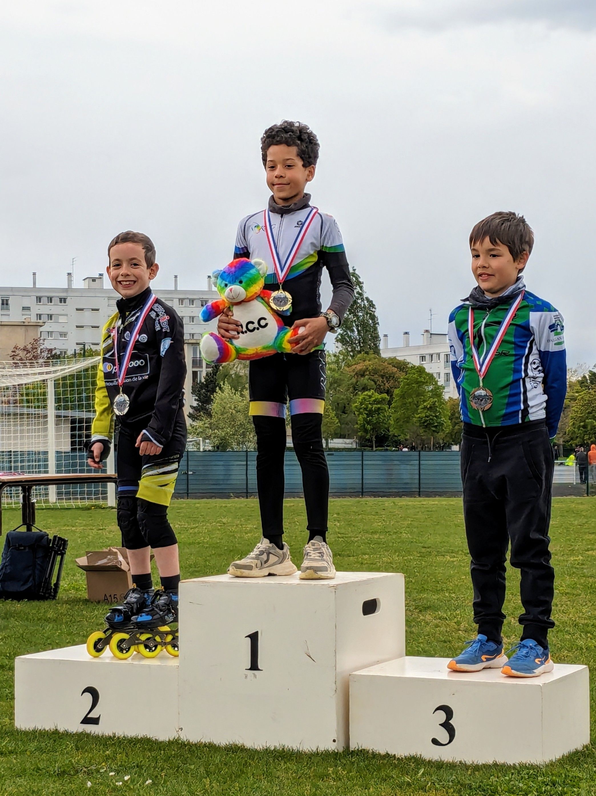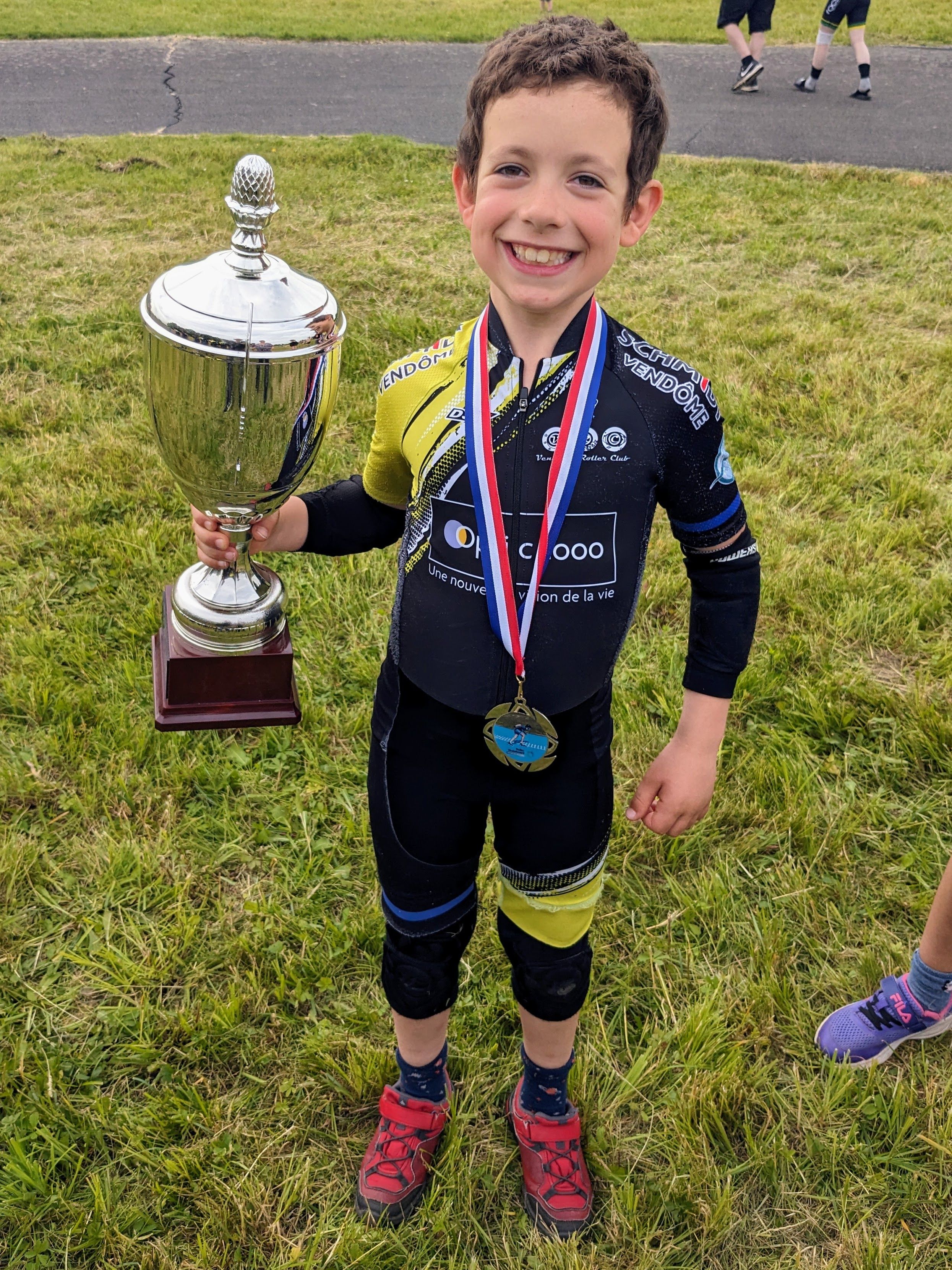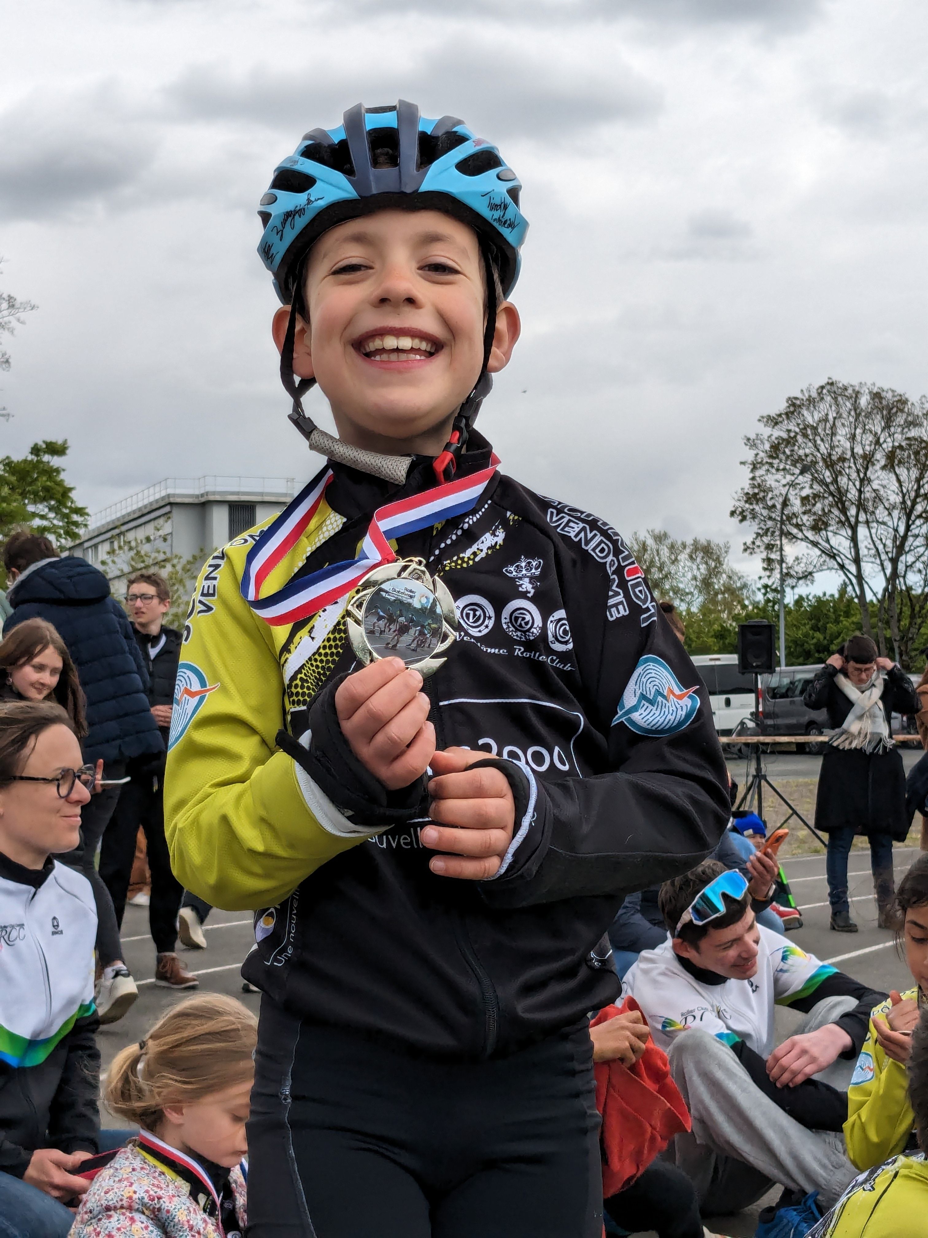 21 Avril 2024, Troisème étape de la coupe régionale : championnat régional route à Bourges, je représente Titouan sur le podium.